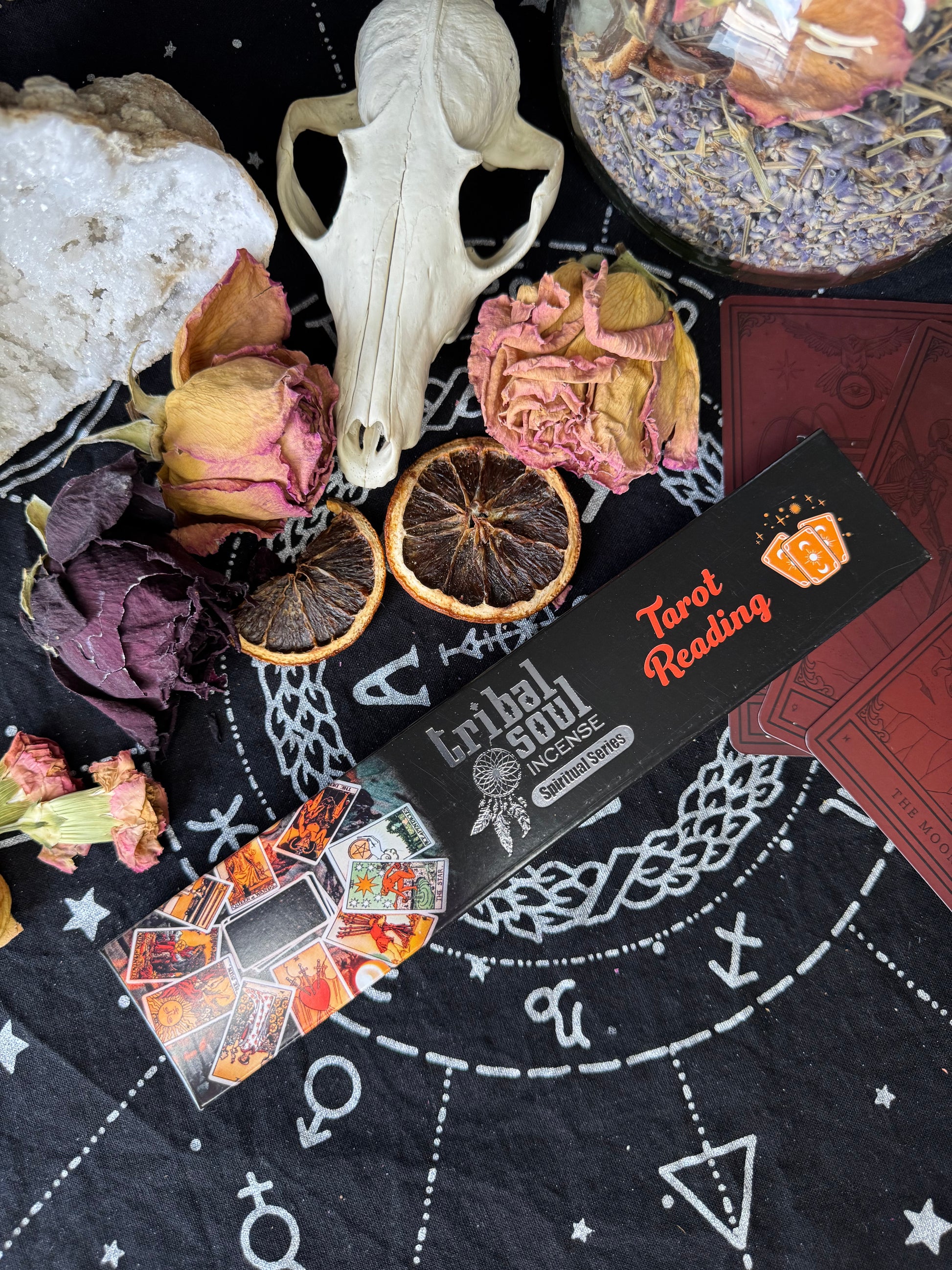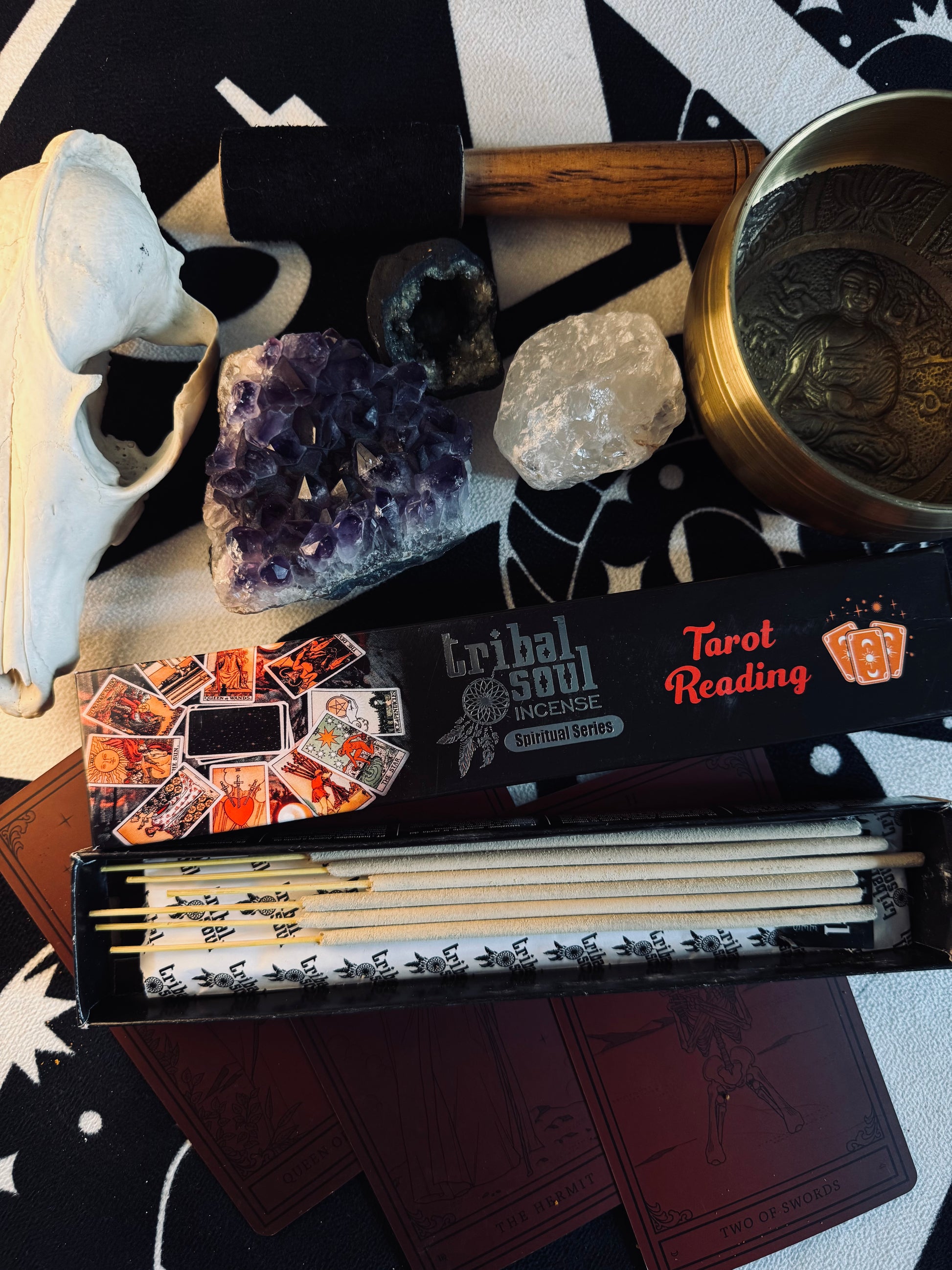 Praktizujúci používajú tarotové karty údajne na získanie náhľadu do minulosti, prítomnosti alebo budúcnosti. S každým čítaním sa v tarotovom balíčku hromadí viac a viac odpadu (fyzického a emocionálneho) a toto kadidlo poskytne dobrú očistu potrebnú na očistenie predchádzajúcej energie a zámerov.