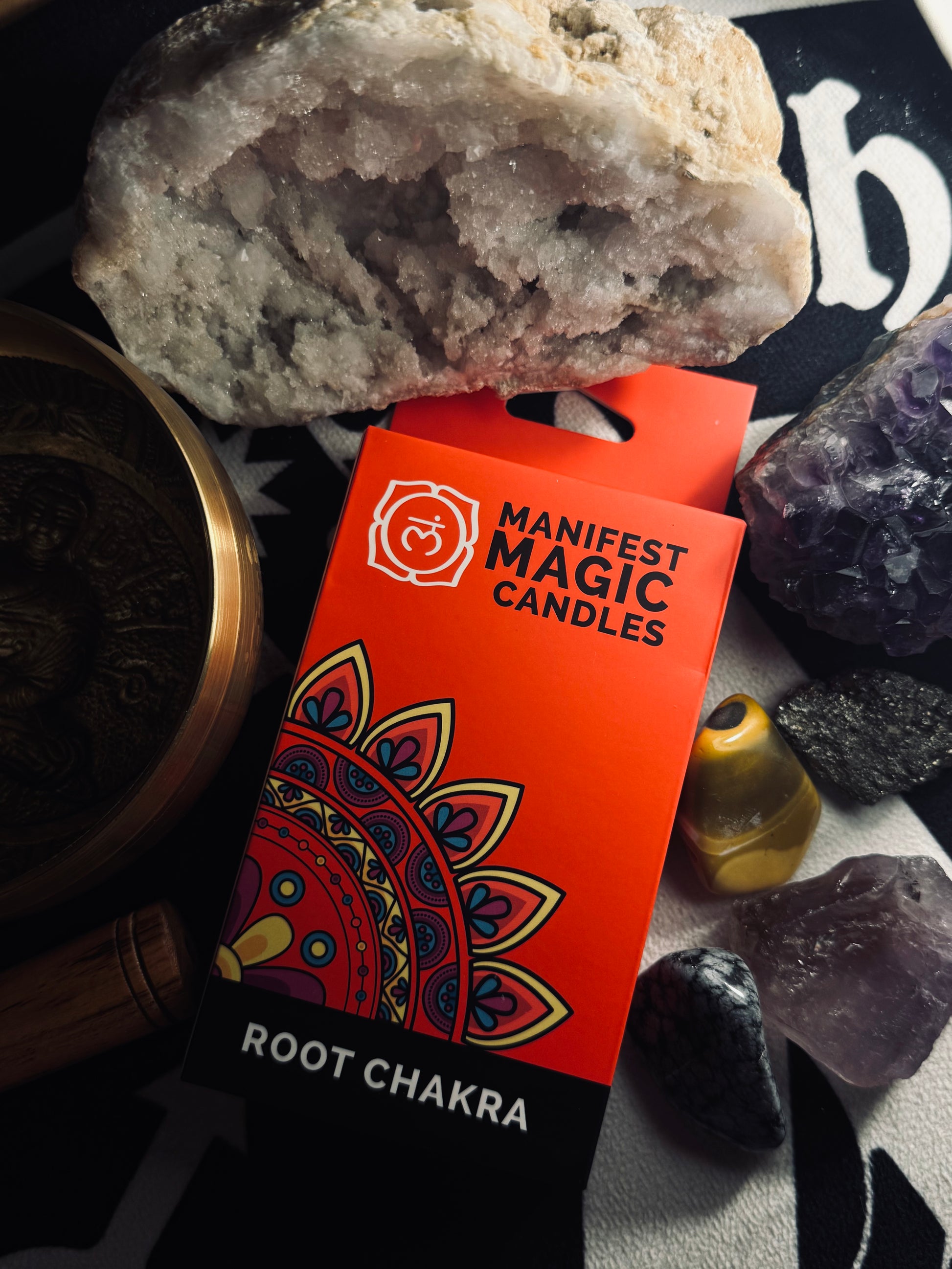 🔴 Manifest Magic Sviečky – KOREŇOVÁ ČAKRA (Root Chakra)