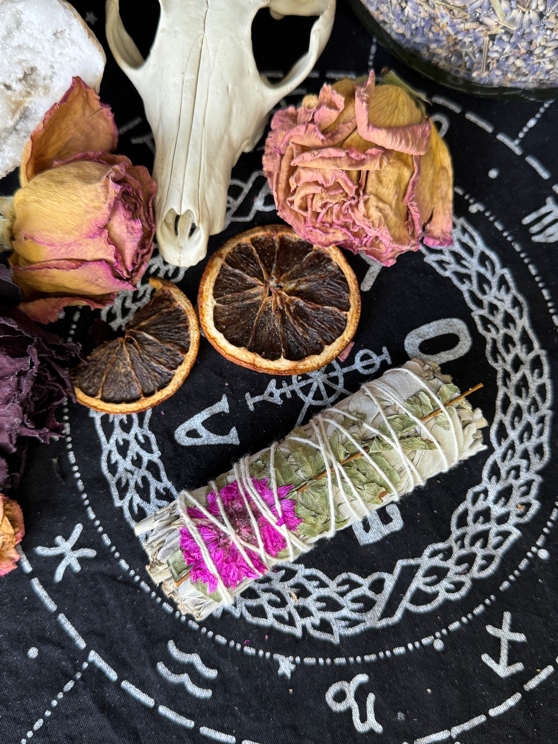 Spojenie očistnej bielej šalvie 🌿 a jemnej krásy dahlie 🌸 prináša do vášho priestoru harmóniu, pokoj a ochranu. Šalvia tradične očisťuje od negatívnych energií, kým dalia podporuje vnútornú silu, lásku a rovnováhu.